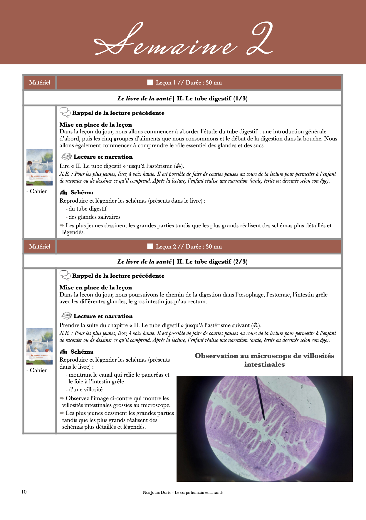 • un plan de cours complet sur 18 semaines (33 leçons) au format PDF, avec la répartition des lectures et des propositions de narration et de schémas ;